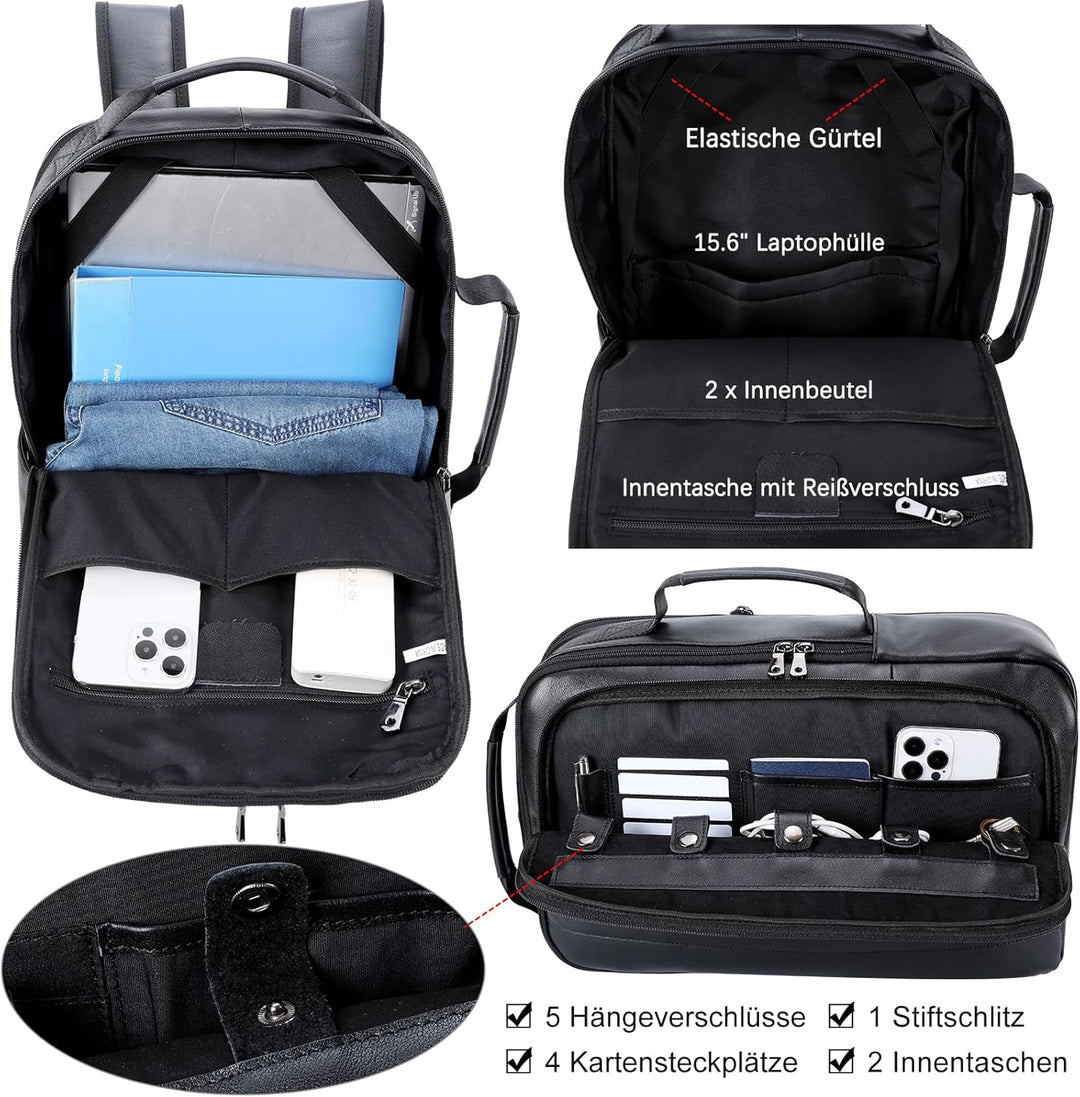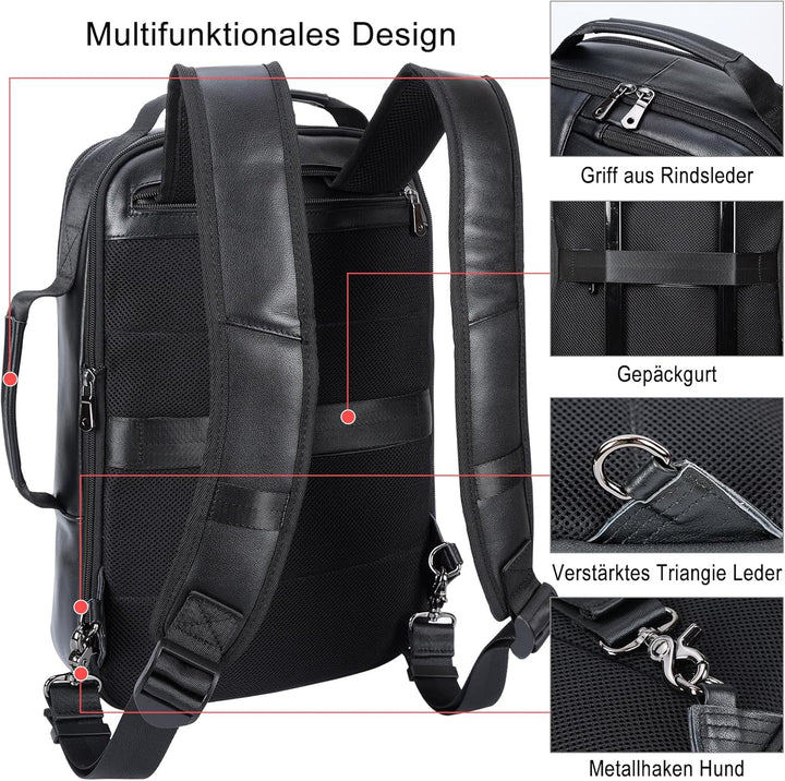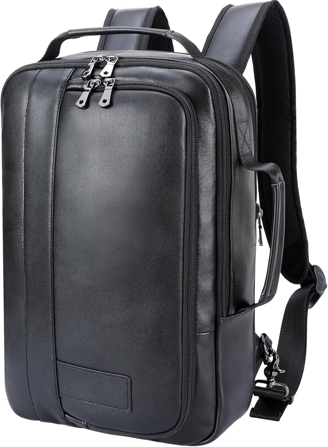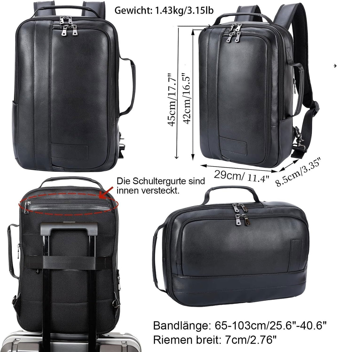 - 【Vollnarbiges Kalbsleder】Der wandelbare Aktentasche-Rucksack für Herren aus Leder passt auf 15,6"-Laptop (bedeutet diagonale Länge eines Laptops). Es besteht aus weichem schwarzem Kalbsleder, das zum Vollnarbenleder gehört und als oberste Schicht