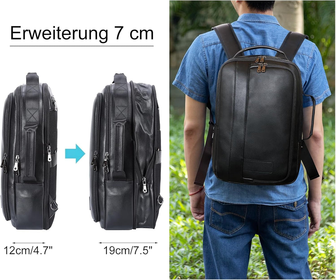 - 【Erweiterbarer Rucksack】Sie können die schwarze Leder-Laptoptasche breiter um 6,5cm/2.6 erweitern. Geräumig, um 15,6 Zoll Laptop, A4-Dateien, Tablet, Telefon, Stifte, Karten, Geldbörse, Kleidung zu verstauen. Grösse:11.4"(L)x3.35"(W: vor der
