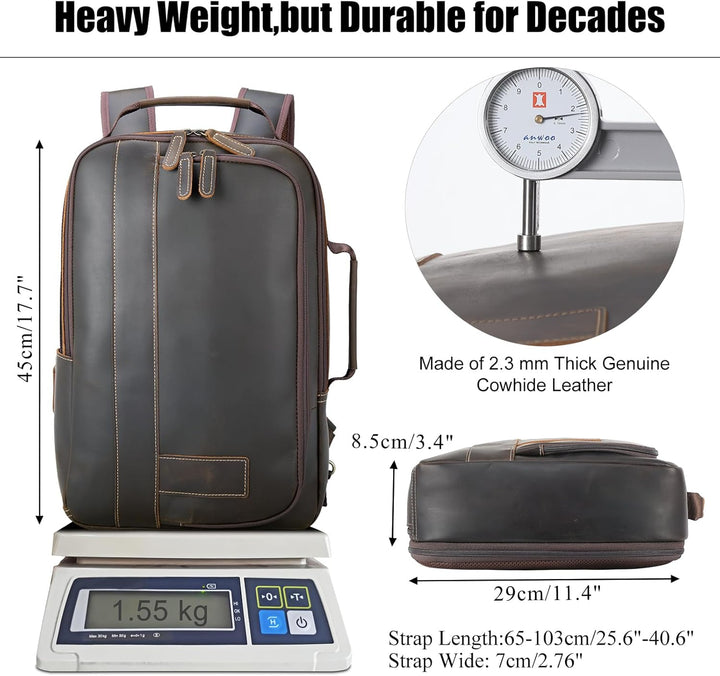 - 【Echtes Rindsleder】Der Leder-Laptop-Rucksack ist aus 2 mm dickem Vollnarbenleder gefertigt. Seine Oberfläche hat einen Retro-Rough-Look, ist sehr langlebig und robust für Jahrzehnte. Die Besonderheit dieser Art von Leder ist, dass es mit dem Alter