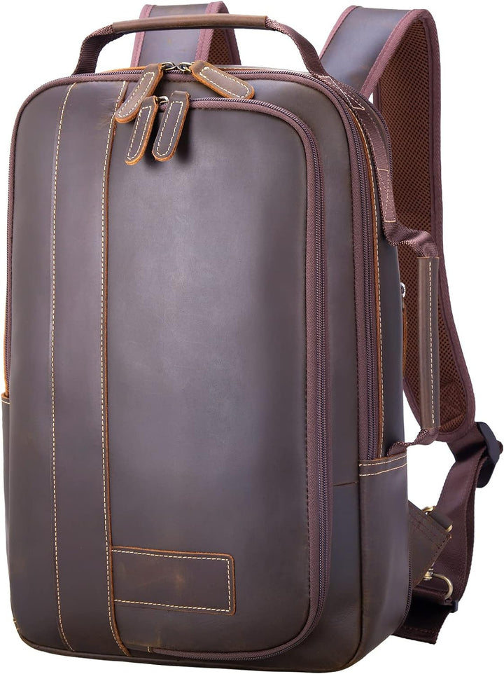 - 【Echtes Rindsleder】Der Leder-Laptop-Rucksack ist aus 2 mm dickem Vollnarbenleder gefertigt. Seine Oberfläche hat einen Retro-Rough-Look, ist sehr langlebig und robust für Jahrzehnte. Die Besonderheit dieser Art von Leder ist, dass es mit dem Alter
