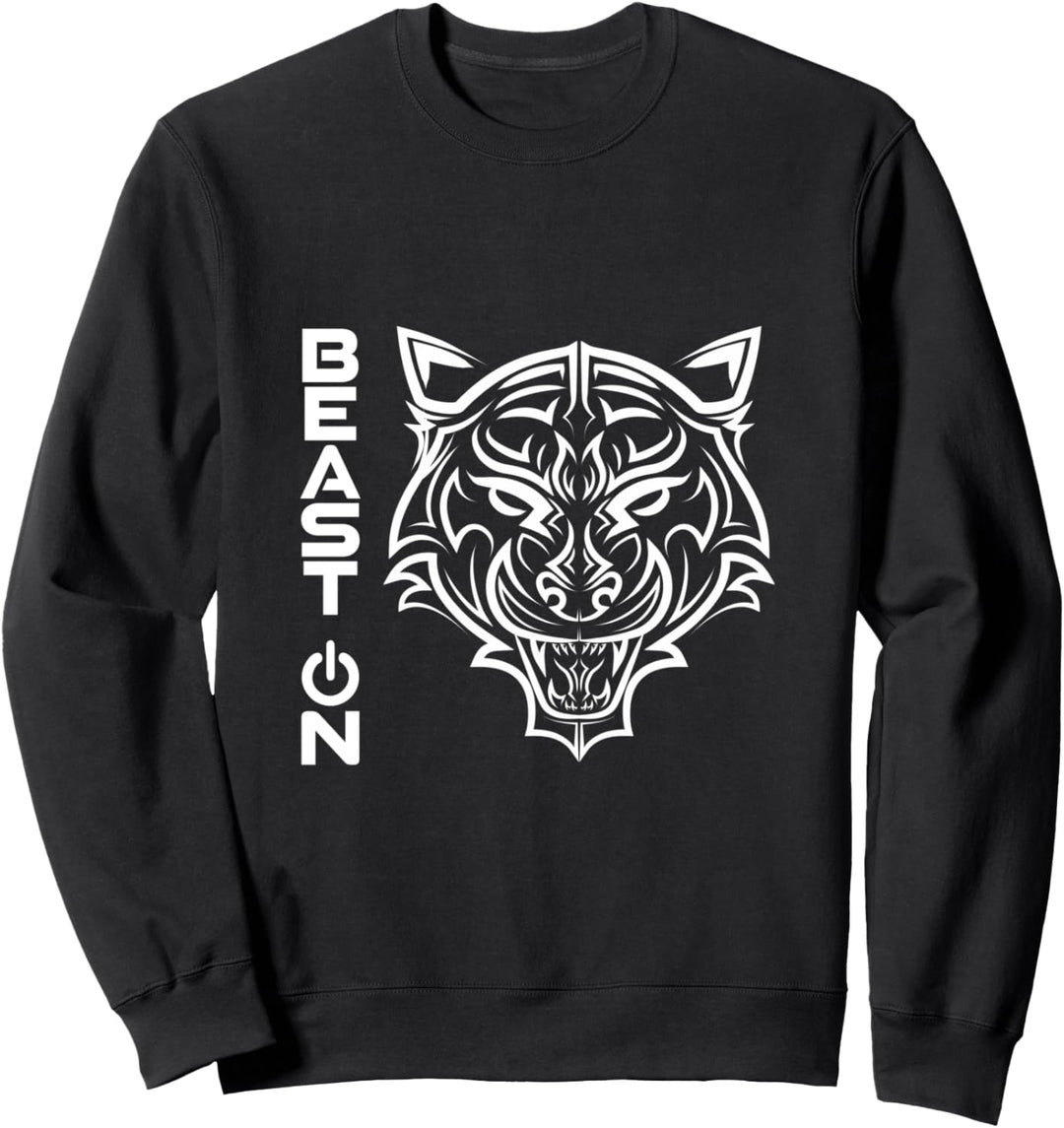 Tiger Kopf | Beast ON | GYM Motivation Fitness Sprüche Sweatshirt