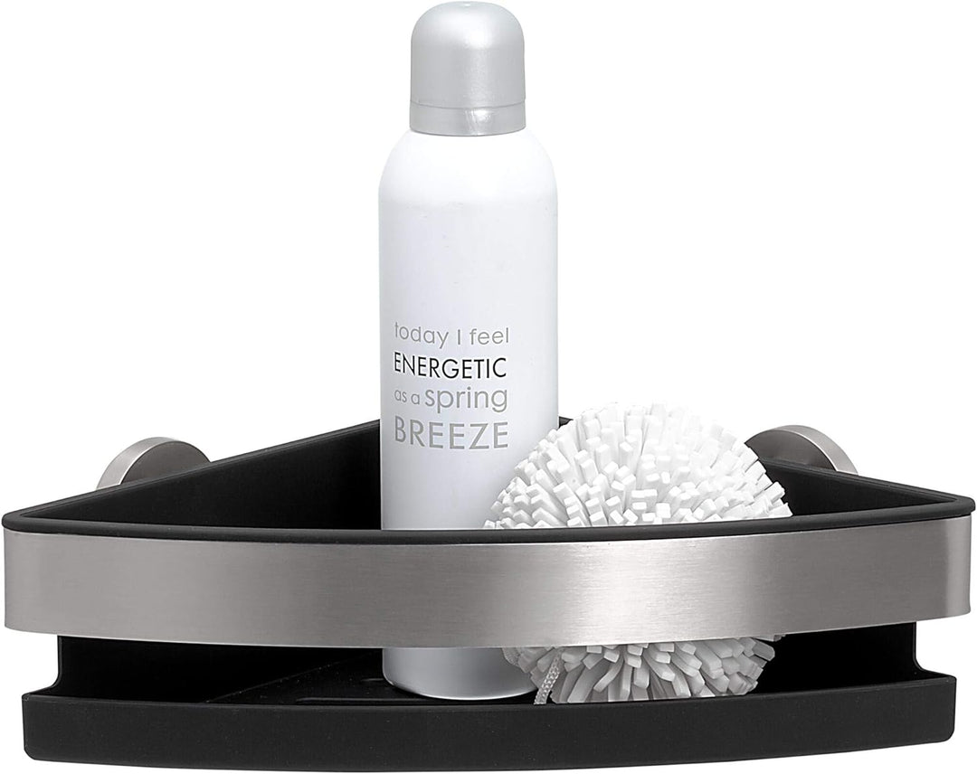 - Formschöne Duschablage aus hochwertigem Edelstahl in der Oberfläche gebürstet mit herausnehmbaren Einsatz aus hochwertigem, matt-schwarzem Kunststoff