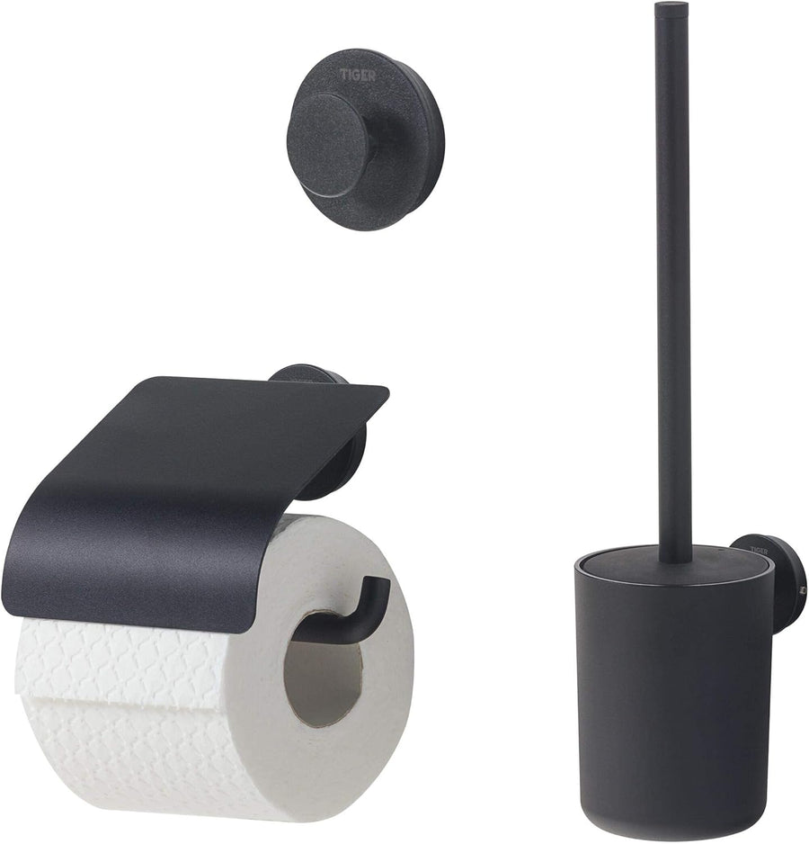 - Badaccessoire-Set bestehend aus Toilettenrollenhalter, Handtuchhaken zum Kleben und Toilettenbürste
