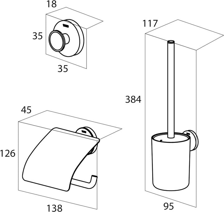 - Der Toilettenbürstenhalter und Toilettenpapierhalter lassen sich einfach mit dem beiliegenden Befestigungsmaterial (Fischer-Dübel und Edelstahlschrauben) montieren. Der Haken ist mit einer Selbstklebefolie ausgestattet