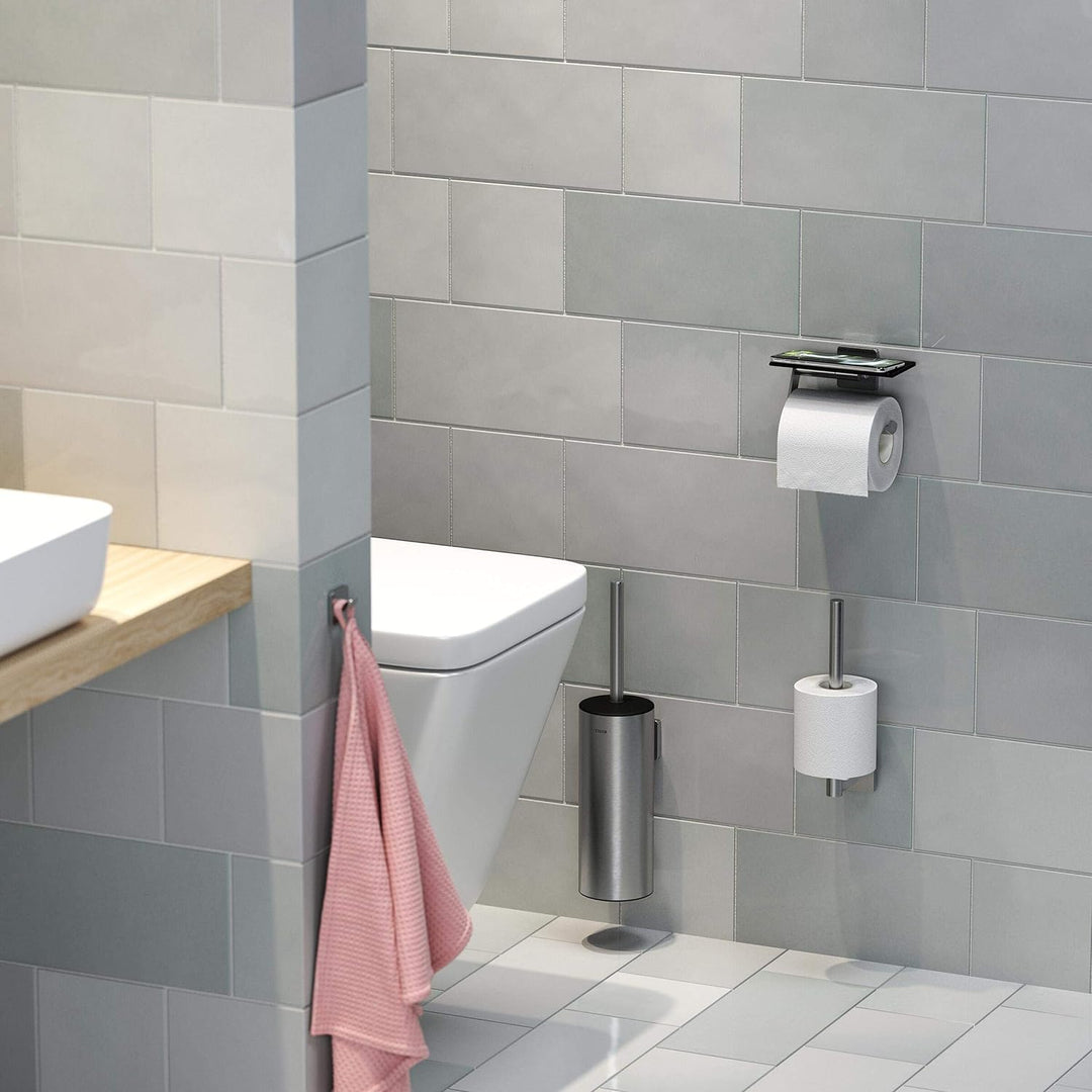 - Moderner Toilettenpapierhalter mit praktischer Ablage für Smartphone & Co.