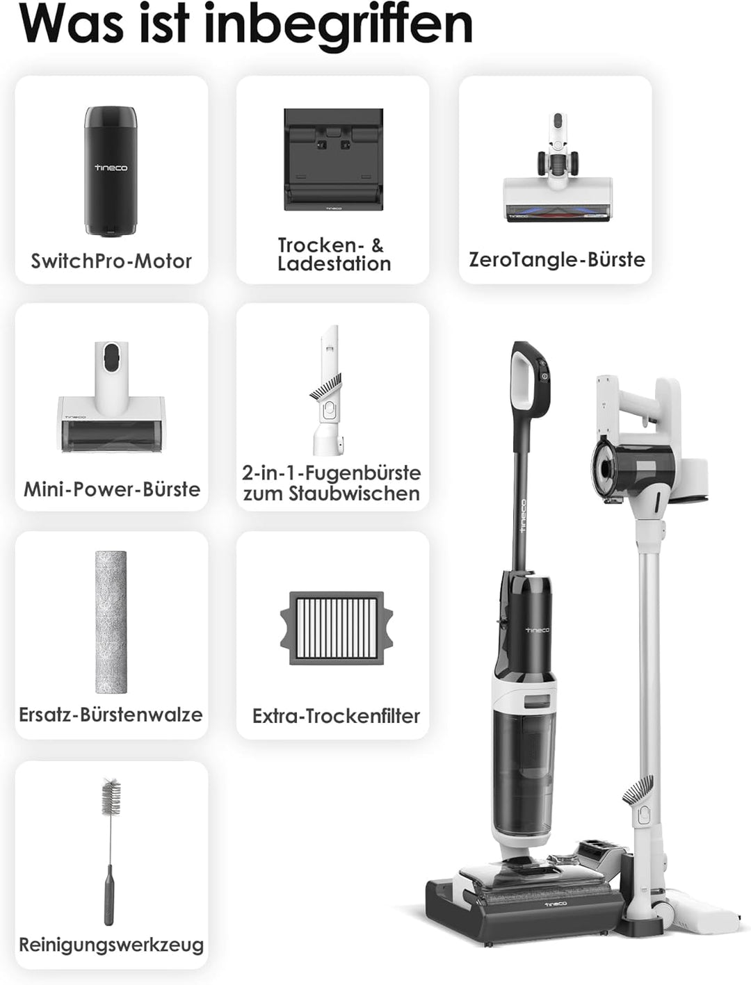 - 5-in-1 Smart Multifunktions Wischsauger Staubsauger: Die ultimative Alternative zu herkömmlichen Staubsaugern, ideal für nasse Verschmutzungen, trockene Flecken und mehr. Dank fortschrittlicher Bodenwasch- und Saugtechnologie entfernt Switch S6 Stretch