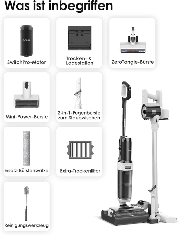 - SwitchPro-Motor für vielseitige Reinigung: Nahtloser Wechsel zwischen Waschsauger und Handstaubsauger für eine gründliche Reinigung im gesamten Zuhause, einschliesslich Küche und Bad. Mit Aufsätzen für empfindliche Oberflächen (z. B. Sofa,