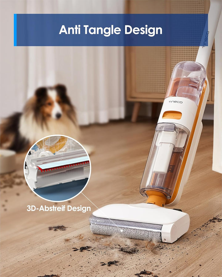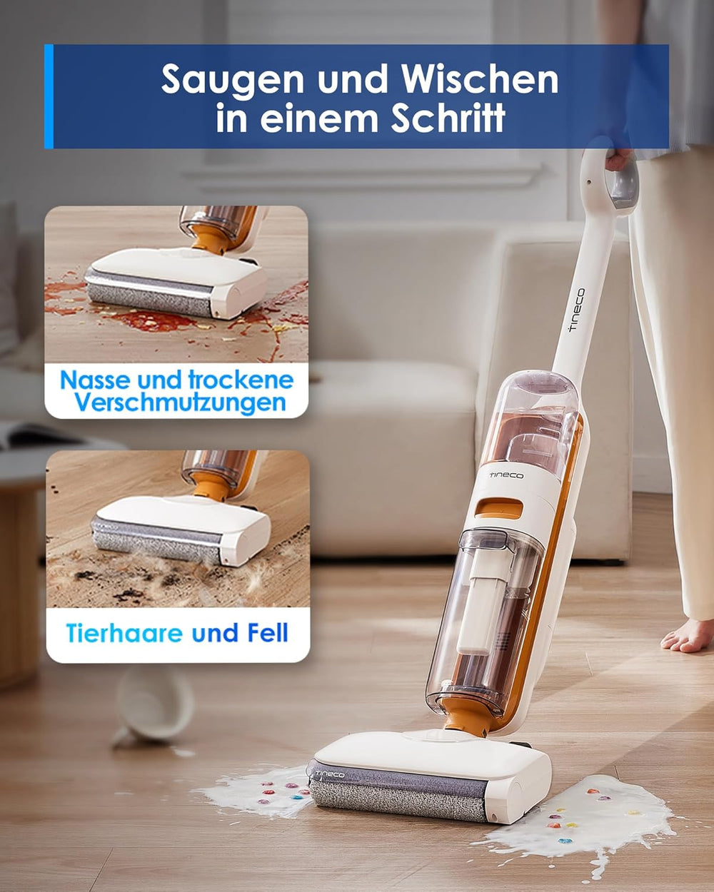 Tineco iFLOOR Y2 Nass Trockensauger, 1L Wassertank, Kantenreinigung, Anti Tangle für Tierhaare, 30mi