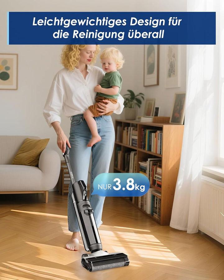 • LEICHTES UND ULTRA-LEISES DESIGN: Mit einem Gewicht von weniger als 5 kg lässt sich das FLOOR ONE S5 COMBO POWER KIT leicht über Ihre Böden manövrieren. Ein bürstenloser Motor, ein geräuschoptimiertes Luftkanaldesign, eine intelligente Leistungsanpassung und eine weiche Bürstenrolle sorgen für ein neues Reinigungserlebnis mit geringem Geräuschpegel. Es verfügt auch über eine schwenkbare Lenkung, selbstfahrende Räder und einen handlichen Griff für einfache Manövrierbarkeit und maximalen Komfort.