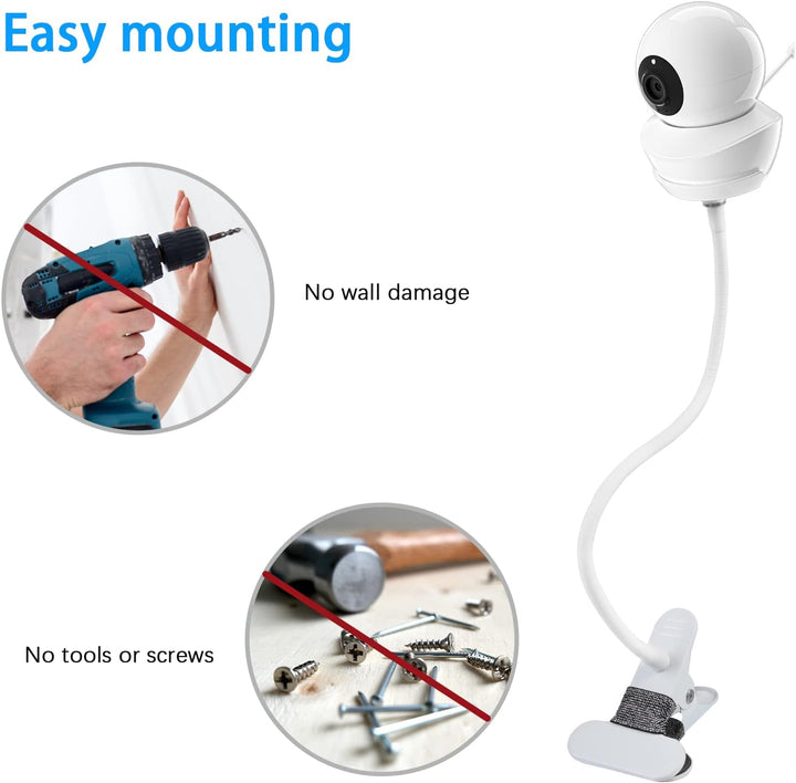 - Easy to use: you just need to clamp the clip where you want to fix it. Change the position of the babysense Baby Monitor according to your needs for optimal viewing. No drilling, no screws, and no damage to the wall.