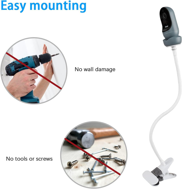 - Easy to use: you just need to clamp the clip where you want to fix it, bend and rotate the gooseneck of the stand, such as a crib or metal pole. Change the position of the Owlet Cam Baby Monitor according to your needs for optimal viewing. No drilling,