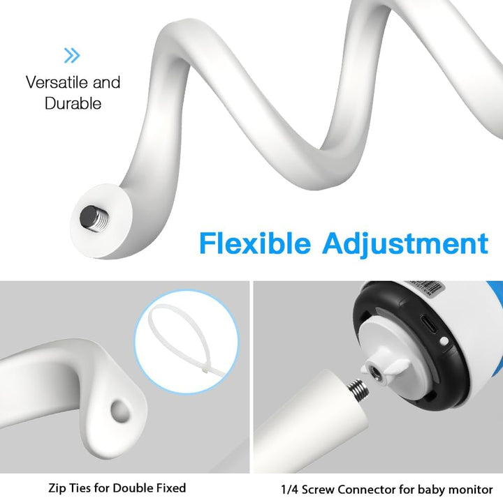 - 【Einfach zu bedienen】Sie müssen nur den Schwanenhals der Halterung biegen und drehen. Sie kann um jede Oberfläche, wie z. B. ein Kinderbett oder eine Metallstange, gewickelt werden. Ändern Sie die Position desBOIFUN Baby monitor nach Ihren
