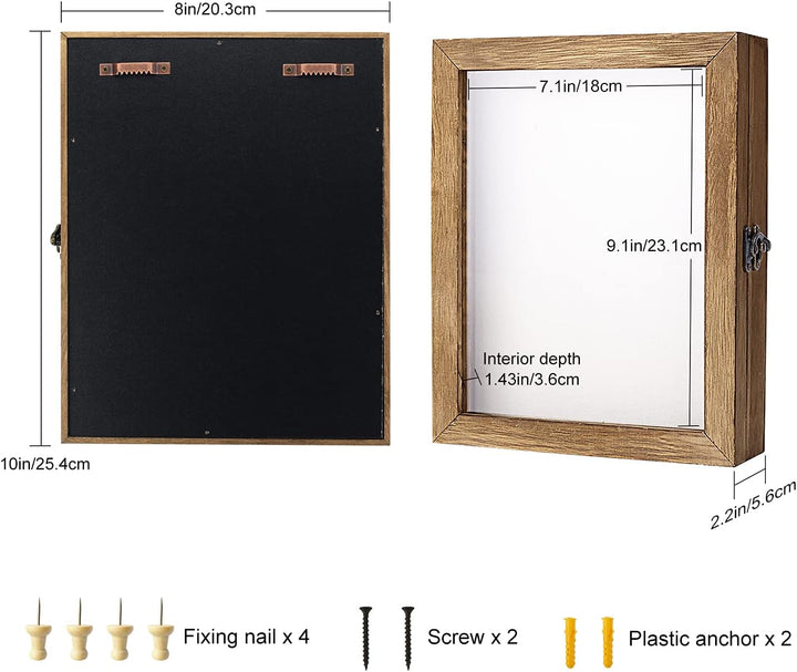 - Hochwertige Materialien - Die 42 x 33 x 6cm tiefe Schattenbox kommt mit einem soliden, langlebigen Holzrahmen, gewebten Stoffinnenraum mit 12 Stecknadeln, Hasp Horn Schloss Tür mit einem transparenten bruchsicheren Glasfenster und zwei