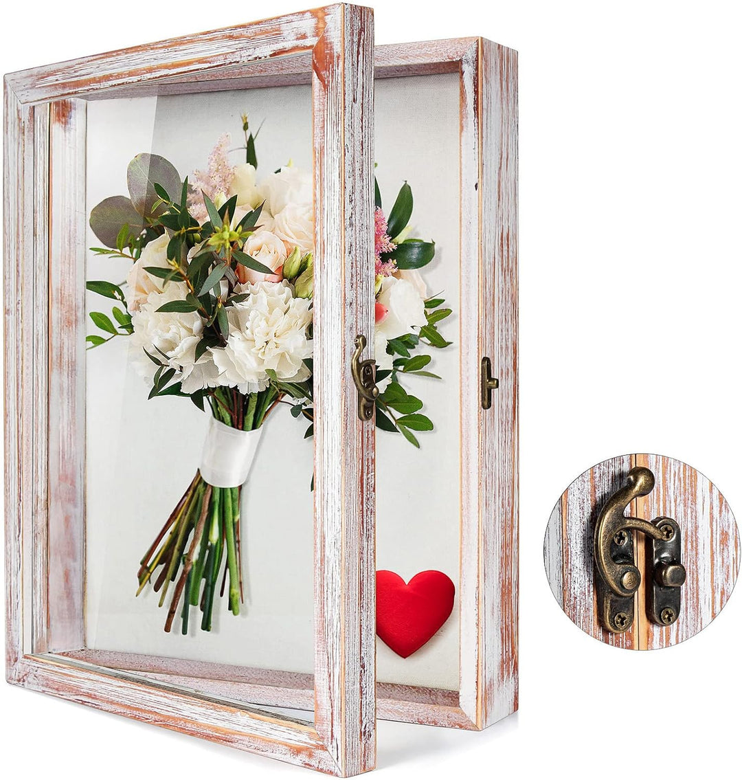 - Hochwertige Materialien - Die 42 x 33 x 6cm tiefe Schattenbox kommt mit einem soliden, langlebigen Holzrahmen, gewebten Stoffinnenraum mit 12 Stecknadeln, Hasp Horn Schloss Tür mit einem transparenten bruchsicheren Glasfenster und zwei
