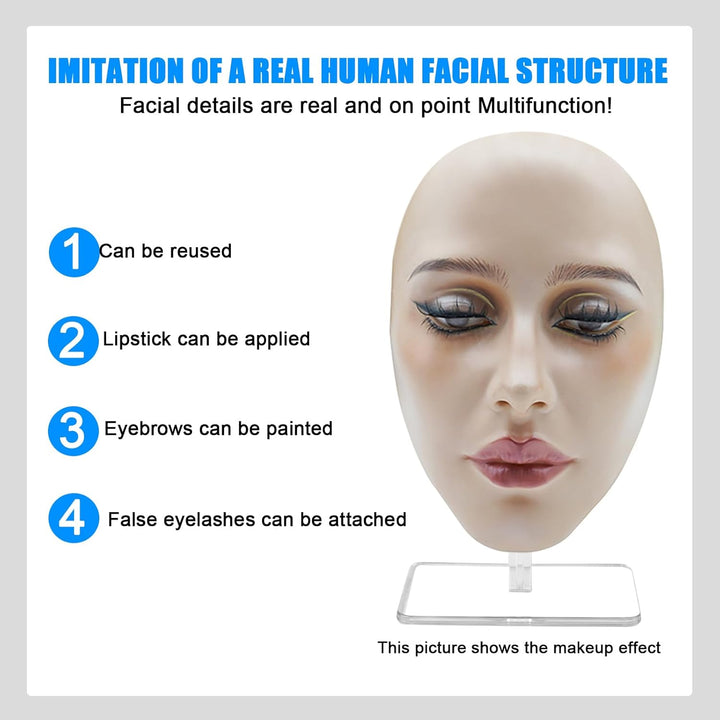 - 【Vielseitig einsetzbar】Dieses Make-up-Übungsgesicht eignet sich perfekt für verschiedene Anwendungsbereiche, darunter Wimpernverlängerungen, Make-up-Praxis, Gesichtsmassagen und Gesichtsmalerei. Übungskopf ist ein vielseitiges Werkzeug, um die