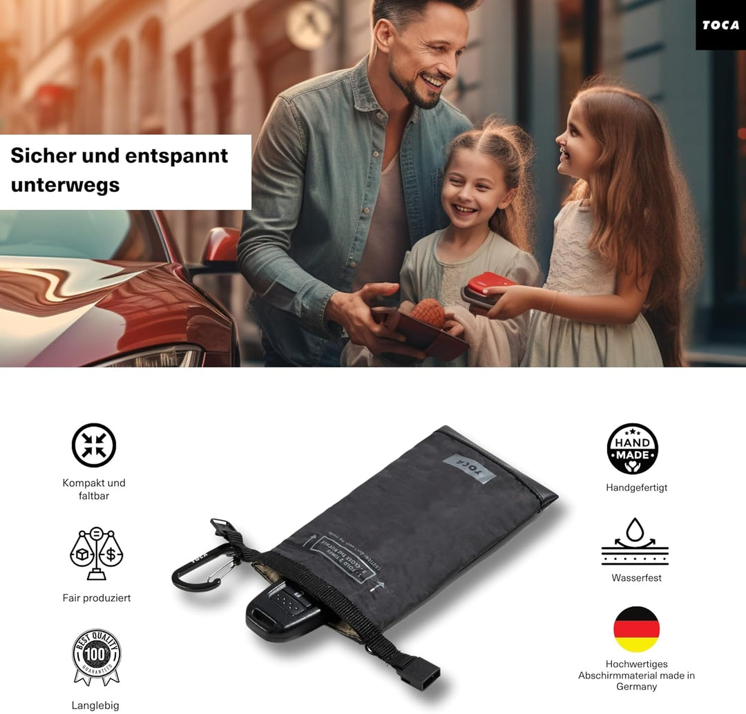 - DEKRA-Zertifizierte Sicherheit: Sowohl die TOCA Handyhülle als auch der KeyFob sind DEKRA-geprüft und zertifiziert, gewährleisten höchste Sicherheitsstandards gegen Hacking und unbefugten Datenzugriff.