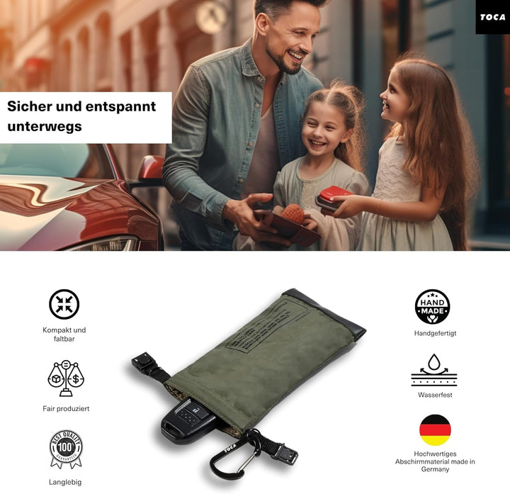 - DEKRA-Zertifizierte Sicherheit: Sowohl die TOCA Handyhülle als auch der KeyFob sind DEKRA-geprüft und zertifiziert, gewährleisten höchste Sicherheitsstandards gegen Hacking und unbefugten Datenzugriff.