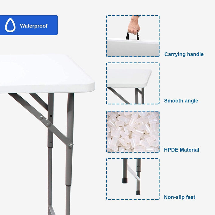 • Langlebig - Der Falttisch besteht aus hochwertigem HDPE-Material und ist widerstandsfähig gegen Abnutzung, Hitze, chemische Verbindungen und kann über einen langen Zeitraum verwendet werden. Er besitzt rutschfeste Gummisohlen, die für Stabilität