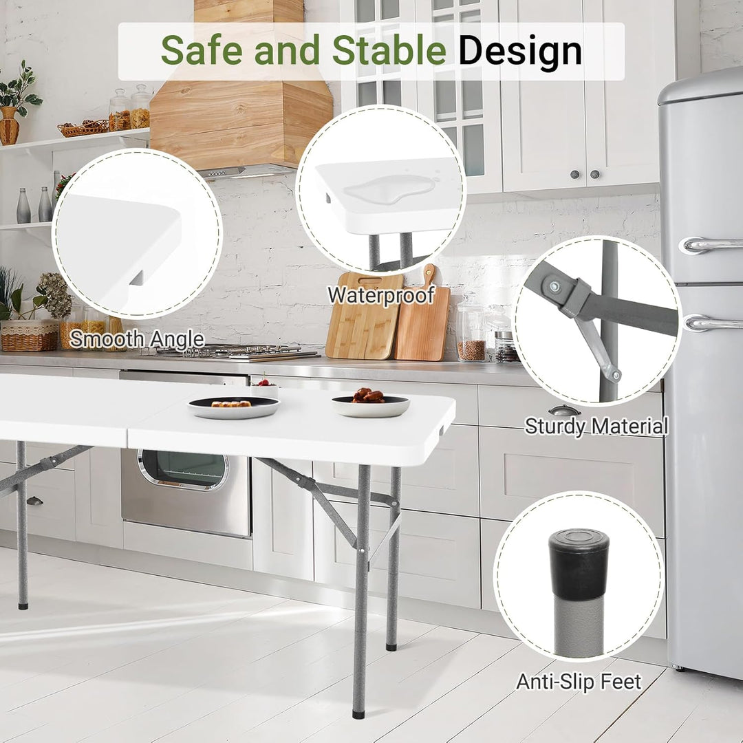 • * Sitzplätze: 6 Personen * Grifftyp: Inklusive GRATIS Tragegriff * Entworfen mit einem genialen Schliesssystem an den Scharnieren, um zu verhindern, dass der Tisch zusammenfällt