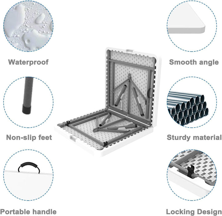 • * Material: HDPE * Aufgeklappte Grösse: 122 x 61 x 74 cm * Maximale Traglast von 100 kg: Perfekt stabil, geeignet zum Servieren und Ausstellen vieler Dinge * Die Oberfläche des Produkts ist glatt und haltbar, was eine verbesserte Haltbarkeit des