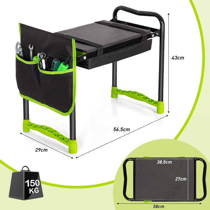 • Leicht und Stark: Mit nur 2,6 kg Gewicht ist diese Bank leicht zu tragen, kann aber eine maximale Last von bis zu 150 kg tragen, was sie für eine breite Palette von Benutzern und Gartenbedürfnissen geeignet macht.