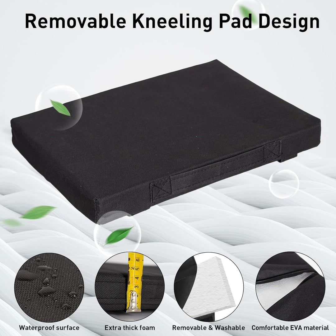• Bequem und Praktisch: Mit einem abnehmbaren, gepolsterten Sitz aus weichem EVA-Material bietet die Bank überlegenen Komfort für lange Gartenarbeitszeiten. Ihr faltbares Design ermöglicht eine einfache Lagerung und Transport, ideal für Gartenarbeit,