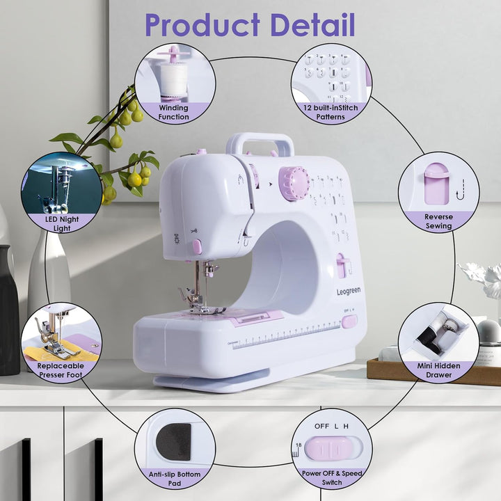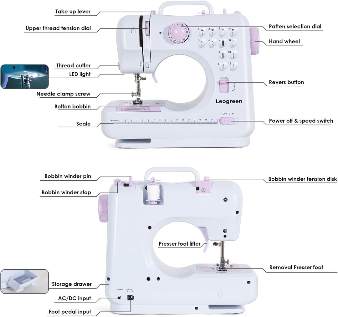 • 12 eingebaute Stiche - 12 verschiedene Arten von Stichmustern, einschliesslich Geradstichen, Zickzackstichen usw., um Ihren unterschiedlichen Nähanforderungen gerecht zu werden. Alle Stichbreiten und Stichlängen können voreingestellt werden. Einfach