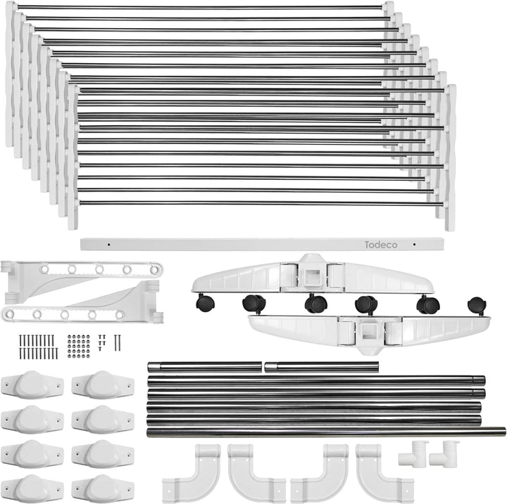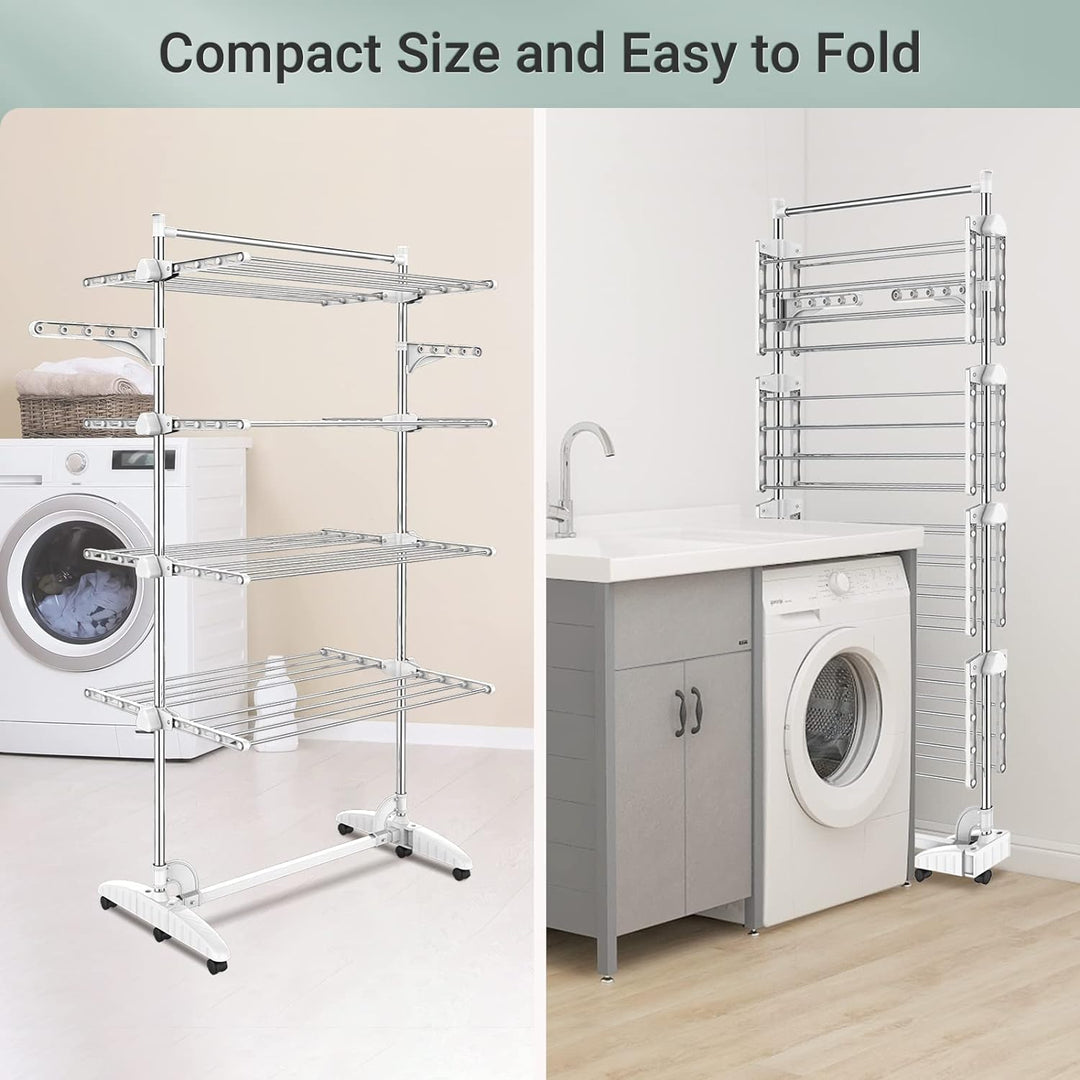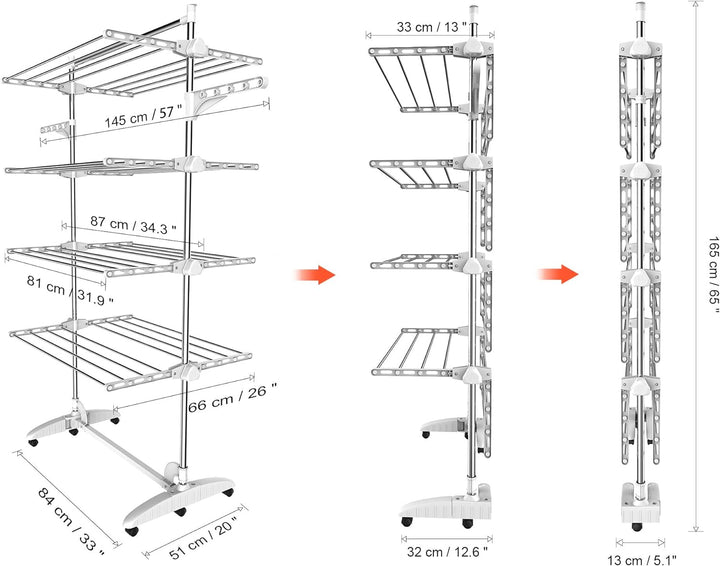 - Hält sogar eine volle Ladung Wäsche, die starken Edelstahlrohre halten das Produkt stabil und machen es sicher zu bedienen. * Ideal für kleine Räume, da jede Hängeschiene zusammengeklappt werden kann, um Platz zu sparen * Die verwendeten Materialien sind umweltfreundlich und schonen die Umwelt * Chices, modernes Design, dass zu Ihrem Dekor passt