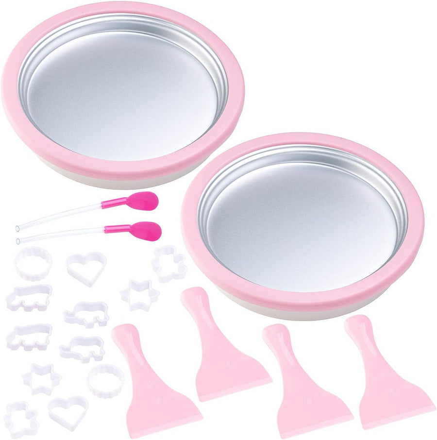 - 2er-Set Eisbereiter-Platten inklusive je 2 Schabern, je 6 Ausstech-Förmchen und Löffeln. Eisplatte für gerolltes Eis - Ausserdem relevant oder passend zu: Maschine, Roll