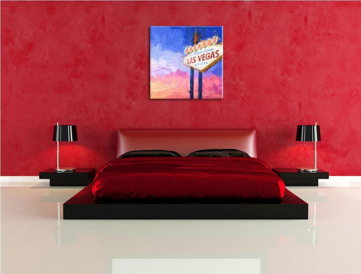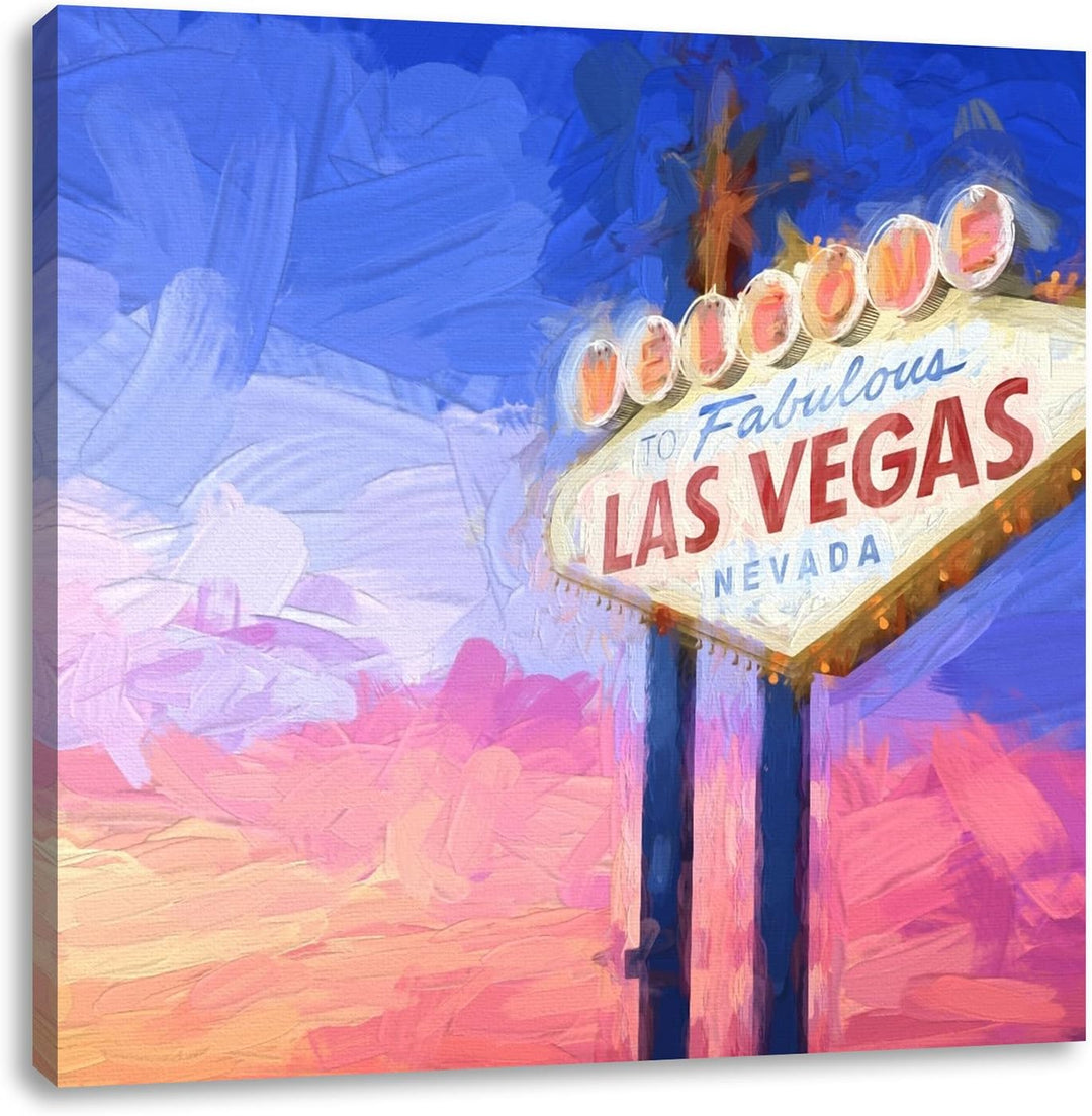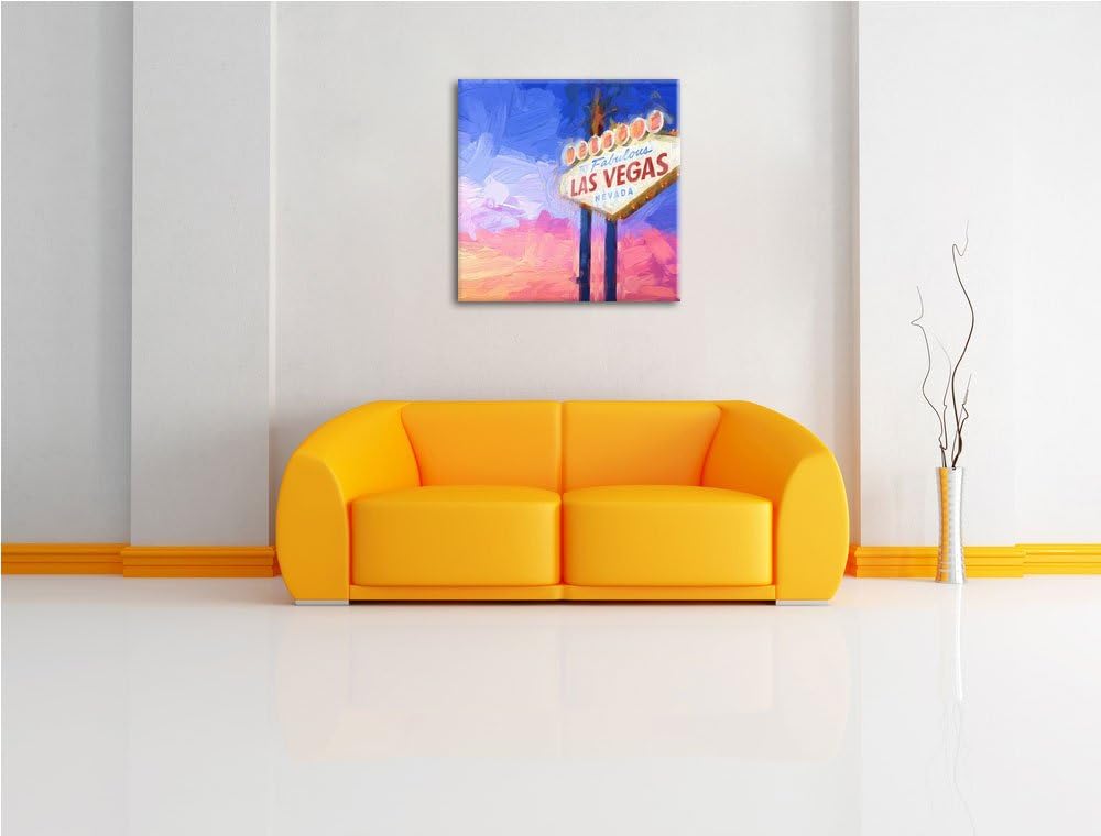 tolles Las Vegas Schild, Format: 70x70 auf Leinwand, XXL riesige Bilder fertig gerahmt mit Keilrahme