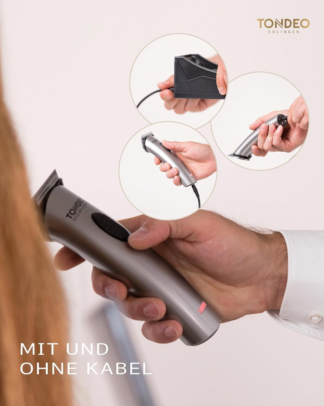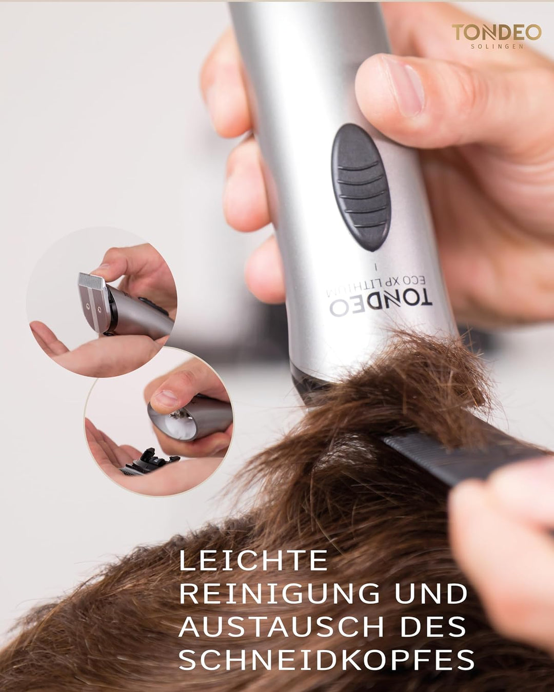 TONDEO Profi Haarschneidemaschine ECO XP LITHIUM SILVER | Haarschneider inklusive Ladestation und Au