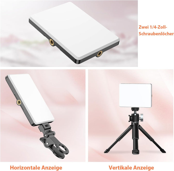 - 【Umfassende Kompatibilität】 Die Kamera-Handyleuchte ist weitgehend mit mehreren Geräten kompatibel. Geeignet für Porträts, Produkte, Innen- und Aussenaufnahmen, Vlog-Fülllicht, Handy-Selfies, YouTube-Live-Aufnahmen und andere Szenen; Kann auch