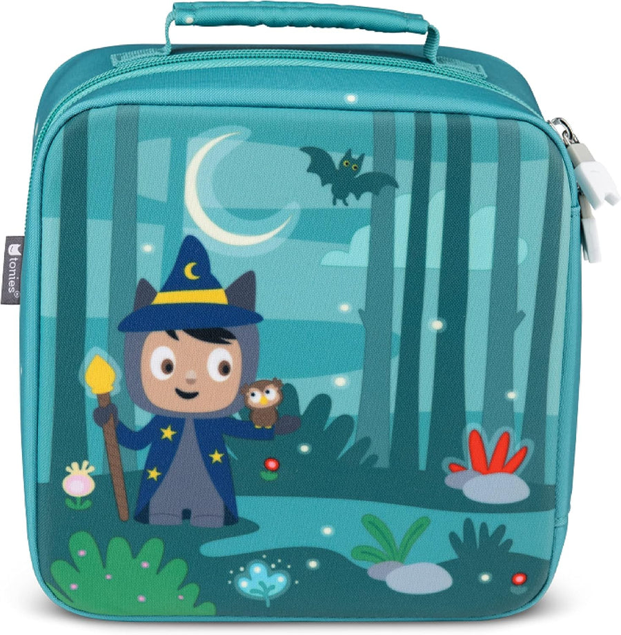 - Lieferumfang & Details – 1x Toniebox Tasche "Unter dem Zaubermond" für unterwegs, mit Platz für mind. 14 Tonie-Figuren, Toniebox und Zubehör, Material: 100 % PET, Masse: 20 x 20 x 12 cm