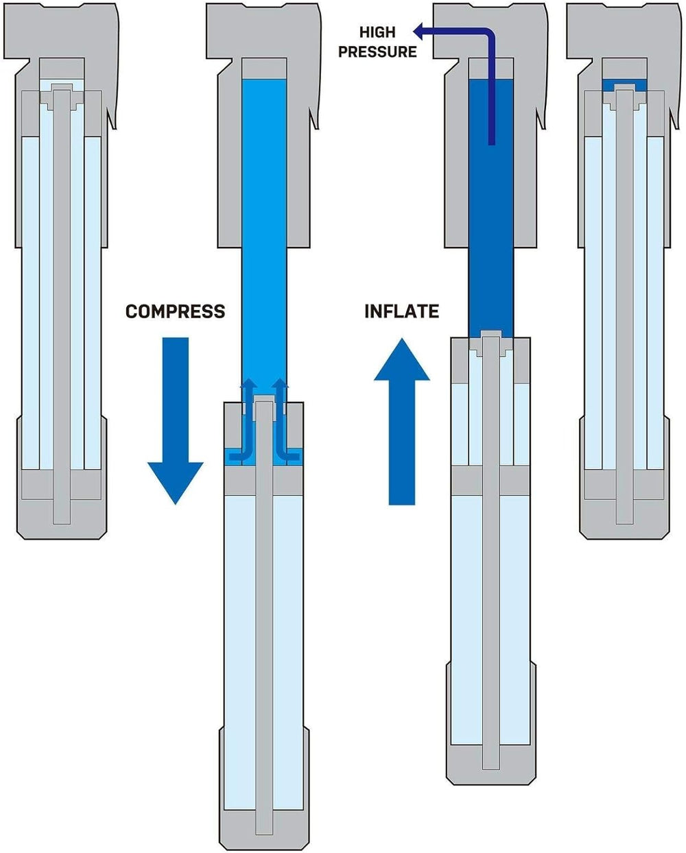 - Die Twin Turbo Technologie nutzt, um Zeit und Kraft zu sparen, beide Hübe zur Luftkomprimierung um den Reifen mit Hochdruck aufzupumpen.