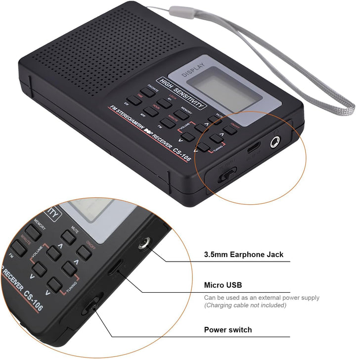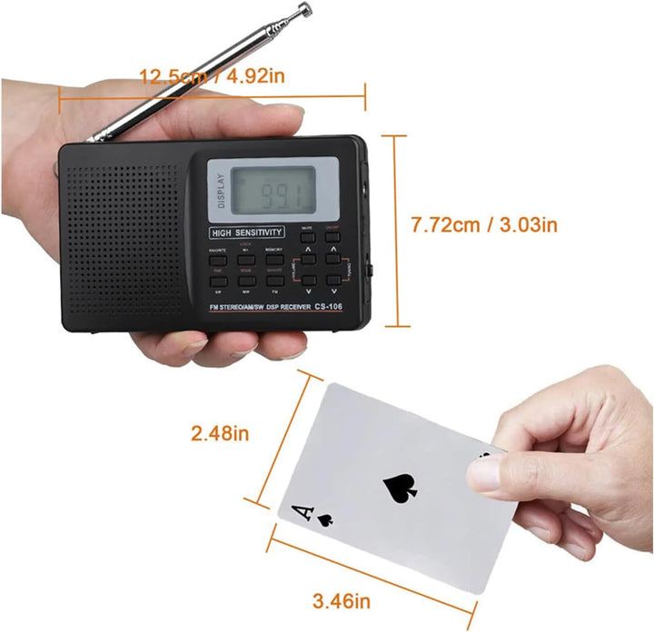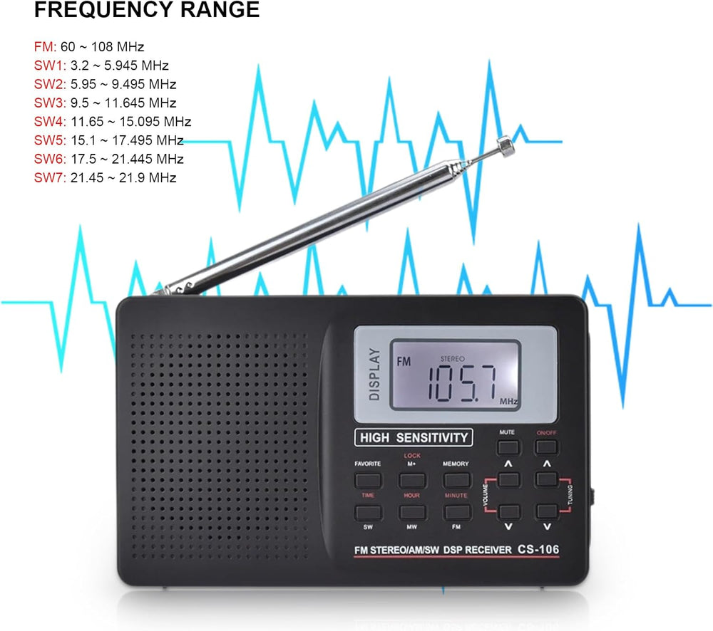 - Automatische Hintergrundbeleuchtung der Taste, nachts einfach zu bedienen.Kurzwellen-Standardschrittwert 0,005 MHz, der Standardschrittwert 9 kHz oder 10 kHz, FM-Standardschrittwert 0,05 MHz.