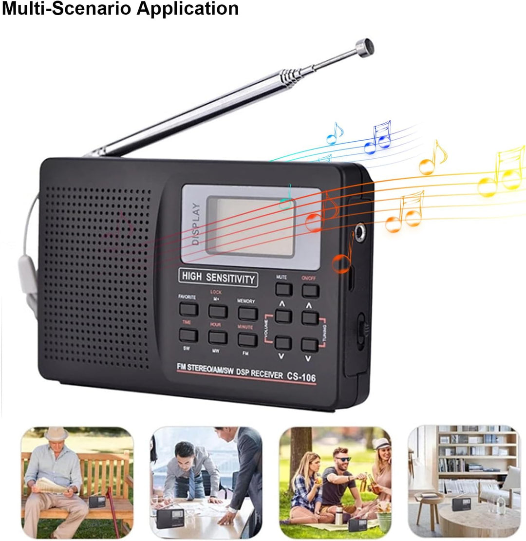 - FM- / AM- / SW- / LW- / TV-Sound-Vollfrequenzempfänger.Mit Uhr und Weckfunktion.