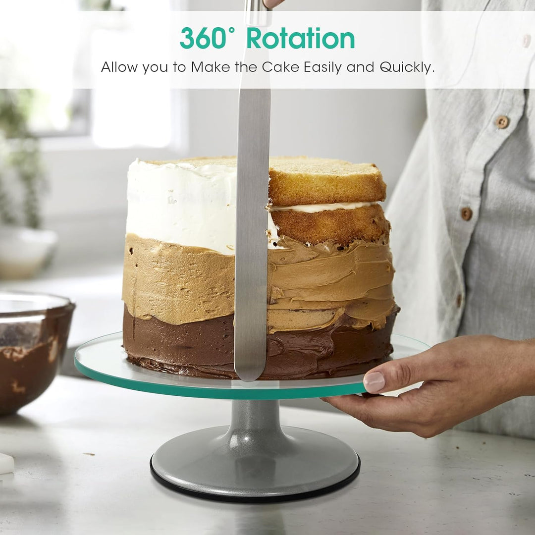 - 【Drehbare Kuchenplatte】 Dank der hochwertigen Edelstahllager lässt sich dieser Tortenständer reibungslos und ohne störende Geräusche um 360 Grad drehen