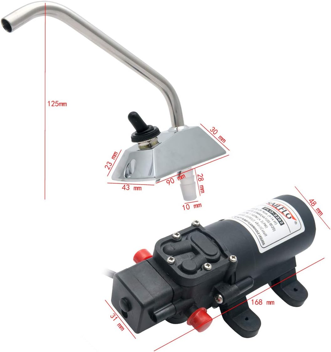 - Versorgungspumpe: Sie läuft mit 12 V Spannung, Gleichstrom-Wasserpumpe. 4,3/1,1 LPM/GPM, 35 PSI Druckschalter, max. 3,5 A, geringer Stromverbrauch, sodass mehr Strom für Ihre anderen Geräte übrig bleibt. Hervorragender Wasserdruck, sorgt für einen