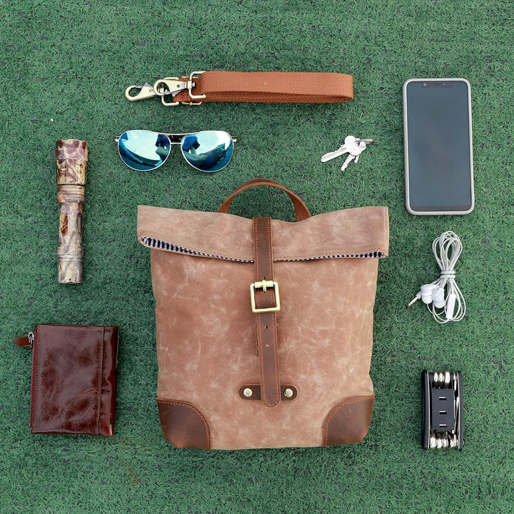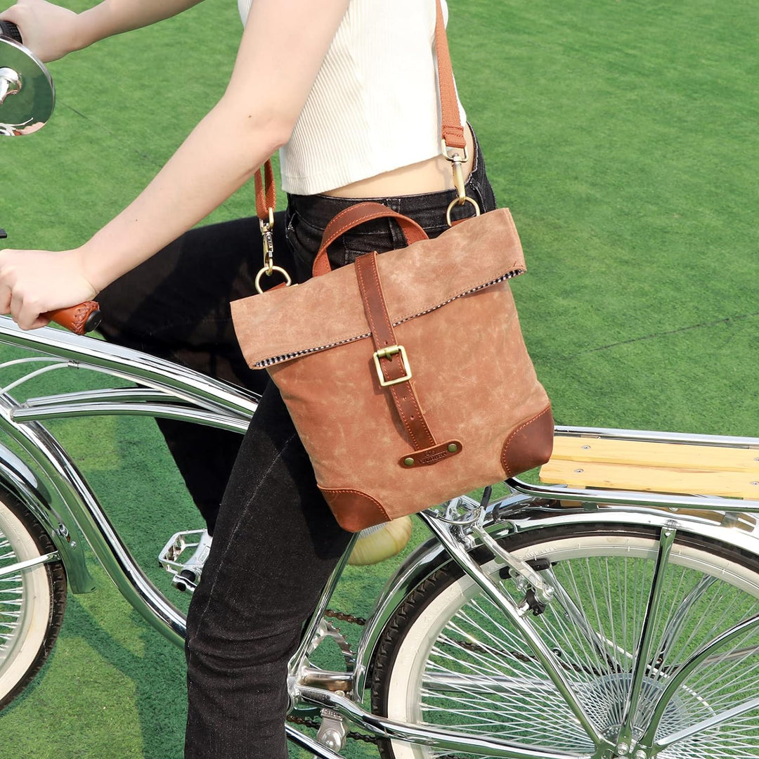 - Tourbon Fahrradtasche ist aus hochwertigem Wachs-Leinwand und echtem Leder.