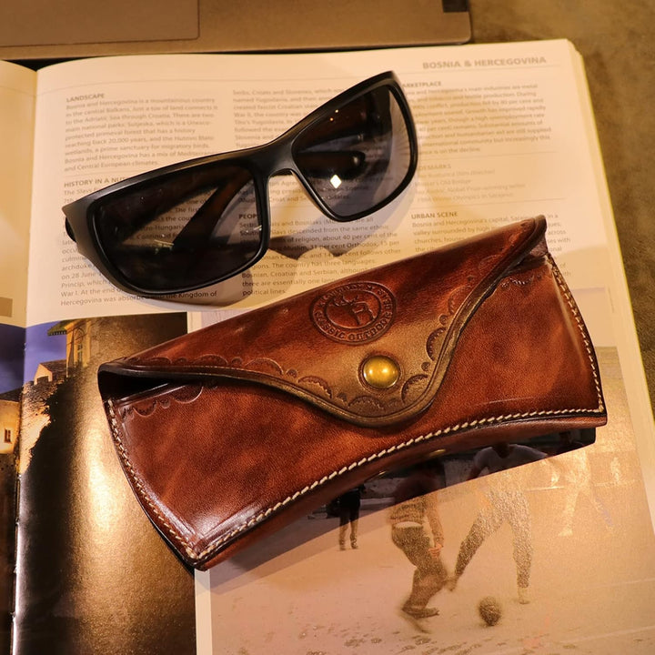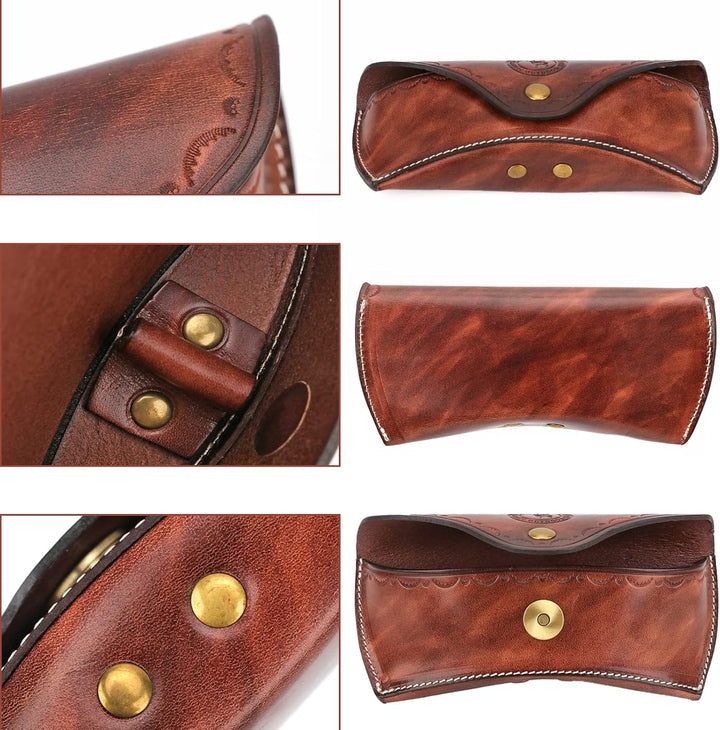PRODUKTBESCHREIBUNGEN 1. Diese Vintage-Tasche ist aus ca. 2,5 mm dickem Leder. 2. Geprägt mit detailliertem elegantem Muster und Tourbon Logo. 3. Für Links- und Rechtshänder geeignet. 4. Lieferumfang: 1 x tragbares Brillenetui aus Leder und 1 x Brillenputztuch (andere Accessoires sind nicht im Lieferumfang enthalten). Auch einfach auf Reisen oder beim Aushängen am Rucksack oder der Schultertasche zu tragen. 6. Schützen Sie Ihre Brille gut vor Kratzern und Staub. 7. Geeignet für alle Altersgruppen. Ideales Geschenk für Männer, Frauen, Studenten, Büroangestellte und Reisende.