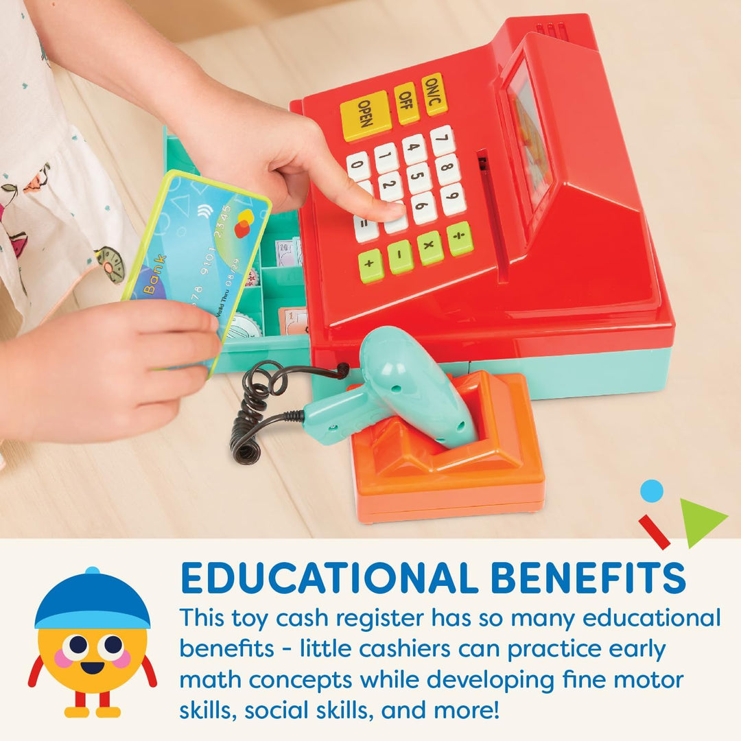 - Spielzeug Registrierkasse für Kinder mit Scanner und Piep-Geräusch. Ziehe die Kredit Karte durch oder öffne die Schublade, um zu bezahlen