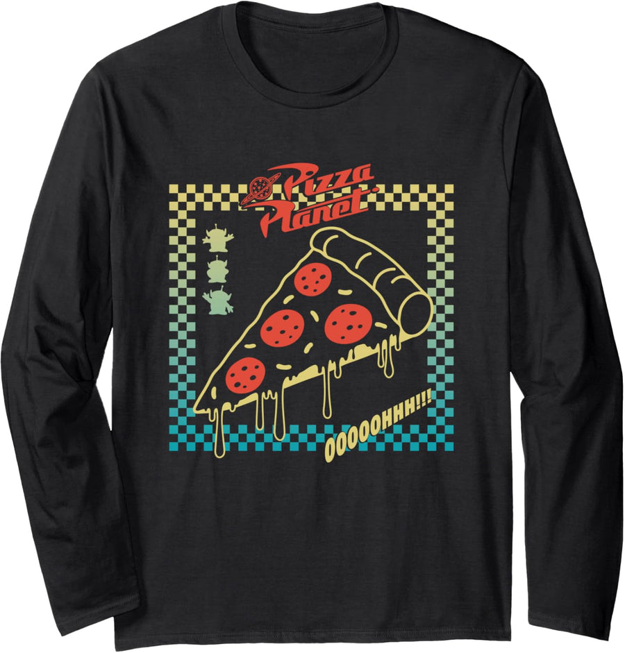 PRODUKTBESCHREIBUNGEN   Represent your favorite space-themed pizza spot, and Andy's favorite restaurant, when you wear this 80s-themed Toy Story t-shirt. It showcases the authentic red Pizza Planet logo, silhouettes of three Aliens, aka the Little Green Men, and a slice of pizza dripping cheese all over the checkered border. With an impressive design, any of your favorite toys, including Buzz Lightyear and Woody would want to sport this Pixar tee. Planning a trip to Disney Parks & Resorts? Whether it's Disneyland or Walt Disney World? Get ready for your trip with a fun tee for you or matching t-shirts for family and friends. Available in a t-shirt, premium t-shirt, tank top, long sleeve tee, and sweatshirt.   Mehr