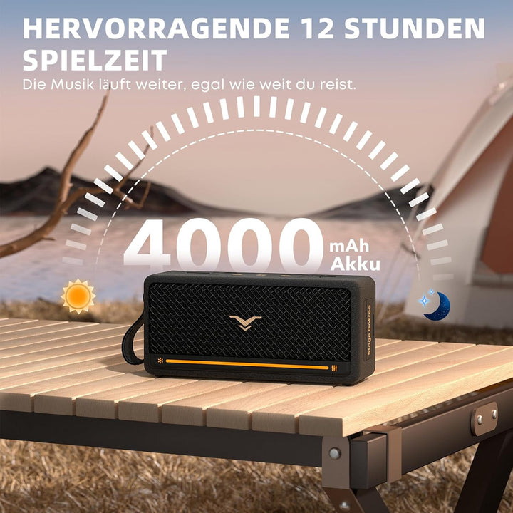 - [Lange Spielzeit] Dieser bluetooth box bietet eine beeindruckende Akkulaufzeit von 12 Stunden, dank einer erstklassigen 4000mAh wiederaufladbaren Batterie, die dafür sorgt, dass Ihre Musik den ganzen Tag anhält. Der StageSound lautsprecher boxen