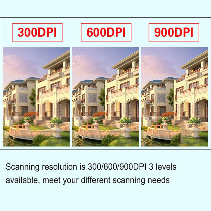 - 【Auflösung und Format】Der Desktop-Scanner hat 3 Auflösungsmodi für Sie zu wählen, 300dpi, 600dpi, 900dpi, können Sie in der klarsten Weise zu speichern, Bilder und Dokumente, wie sie klar angezeigt werden. Wählen Sie einfach die gewünschte