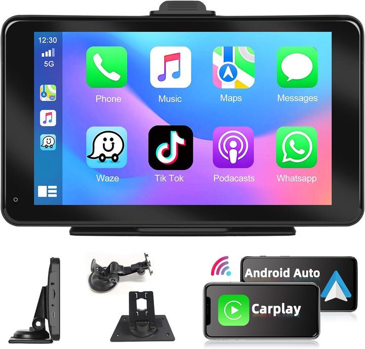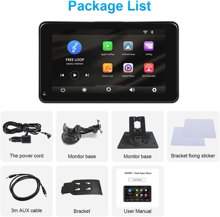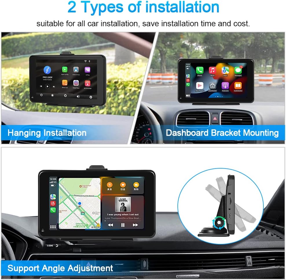 - [Einfache Installation und Kostenersparnis] – Das Kit enthält eine vertikale Halterung und eine Saugnapfhalterung. Das Carplay 7-Zoll-Radio kann mit der vertikalen Halterung auf Ihrem Armaturenbrett oder mit einem starken Saugnapf an der