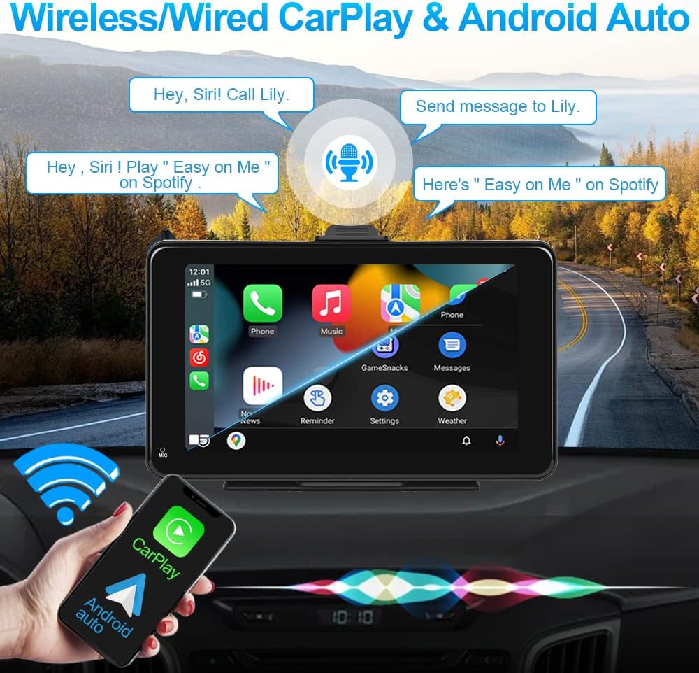 - [Drahtloses Apple Carplay & Android Auto & Apple Airplay] – Kompatibel mit Apple Carplay und Android Auto. Nach der drahtlosen oder USB-Verbindung kann es mit Siri / Karten / Musik / Telefonanrufkompatibilität verwendet werden. Unterstützt die