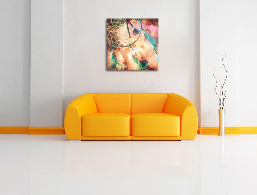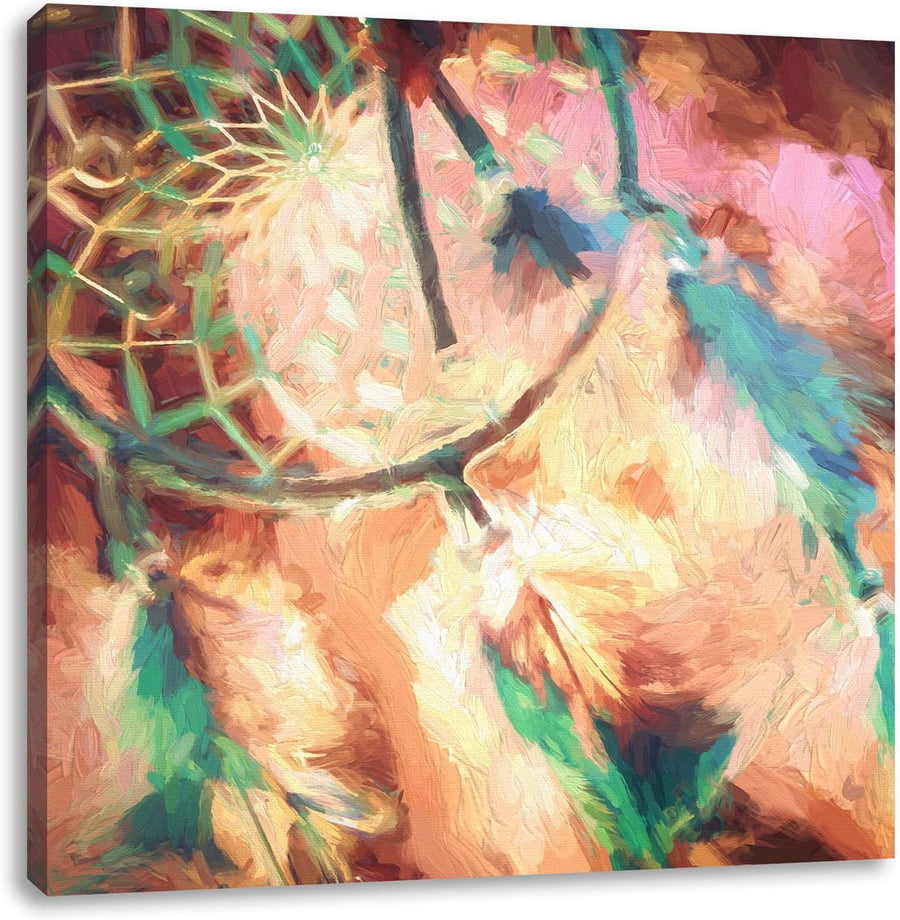 Traumfänger Pinsel Effekt, Format: 70x70 auf Leinwand, XXL riesige Bilder fertig gerahmt mit Keilrah