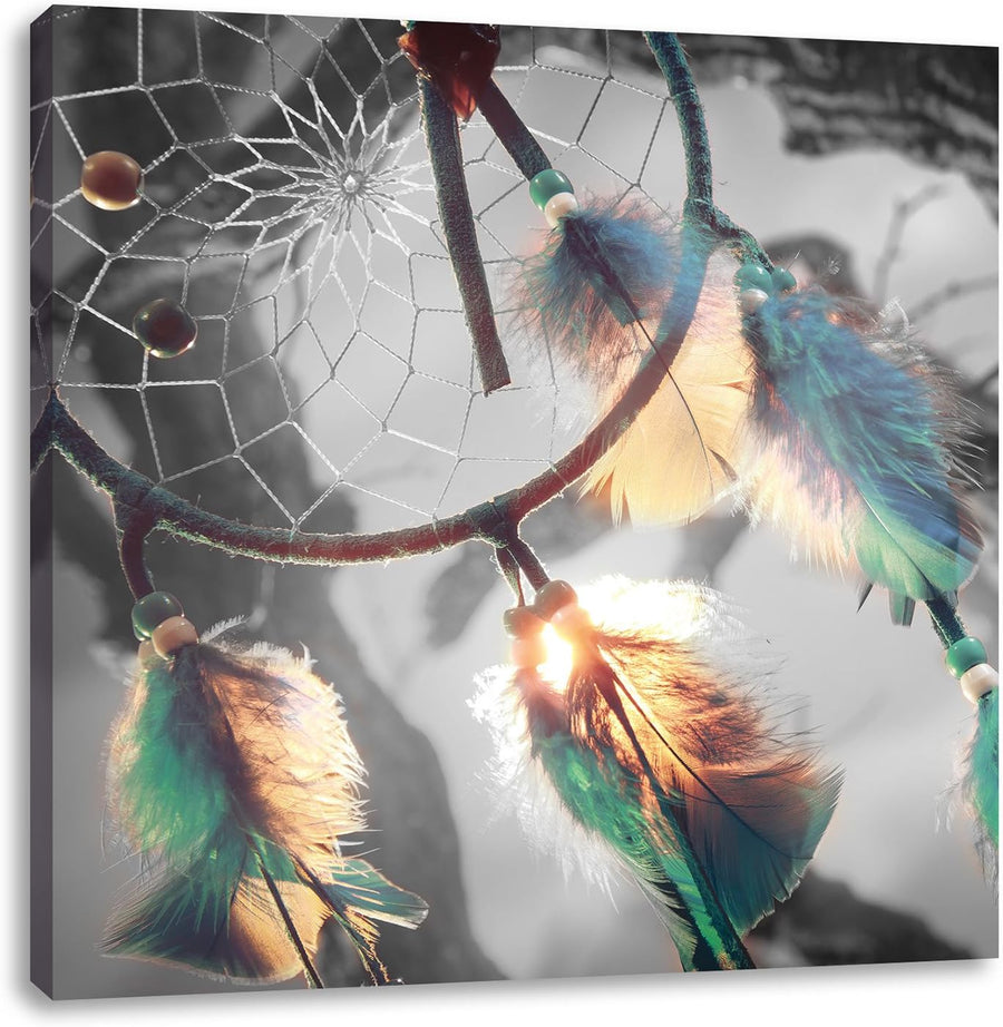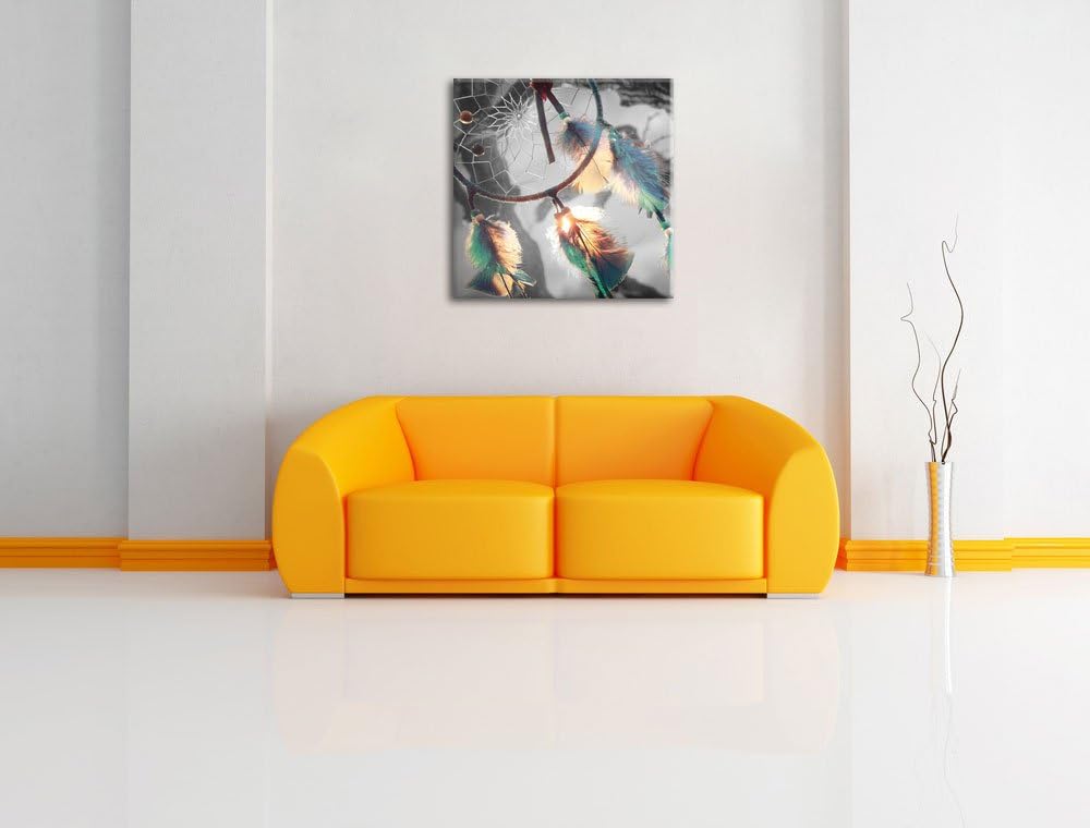 Traumfänger Schwarz/Weiss, Format: 70x70 auf Leinwand, XXL riesige Bilder fertig gerahmt mit Keilrah