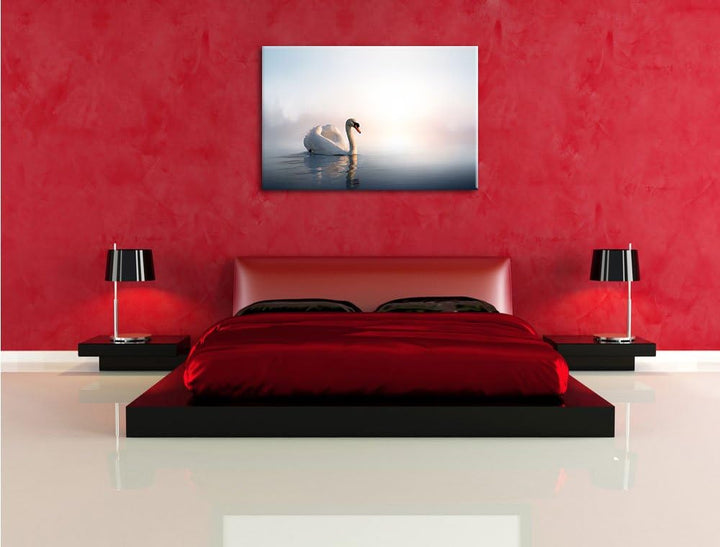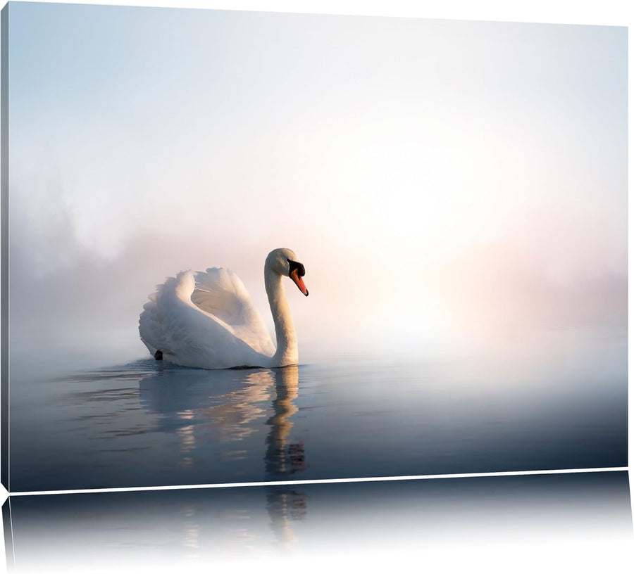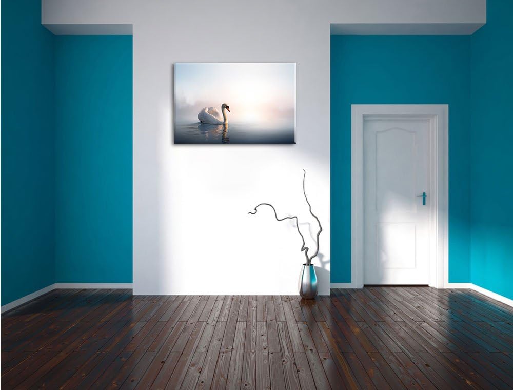 traumhafter weisser Schwan im See Format: 100x70 auf Leinwand, XXL riesige Bilder fertig gerahmt mit