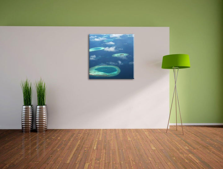 Trauminsel im Meer, Format: 70x70 auf Leinwand, XXL riesige Bilder fertig gerahmt mit Keilrahmen, Ku